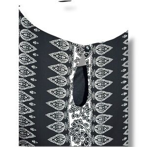Elegant black and white dress by Luxology. Features intricate patterns for a chic look.