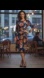 Vibrant and flattering floral dress by Luxology, featuring warm rust and orange blooms against a rich navy and cobalt background.