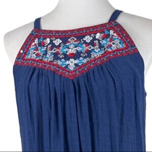 Luxology Navy Gauze Halter Dress with Embroidered Bodice and Sequins Size S