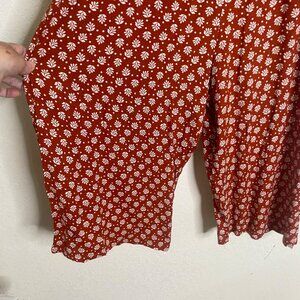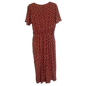 Luxology Pantsuit Jumper Womens Size L Orange Floral Wide Leg Career Casual