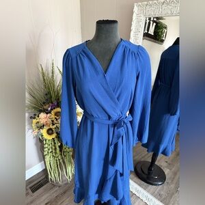 Luxology • Ruffle Faux Wrap Midi Dress