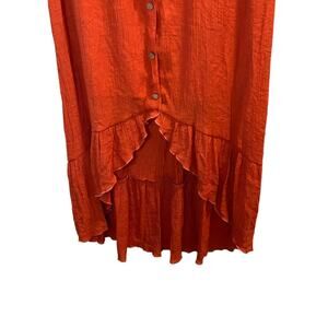 Luxology Size L Sleeveless Asymmetrical Hem Dress Orange Buttons Elastic Waist