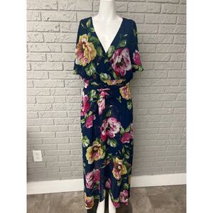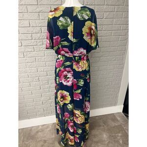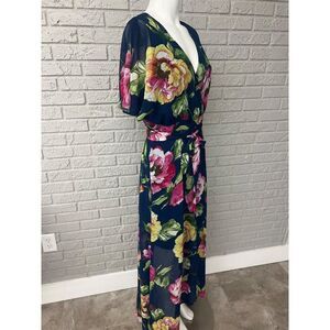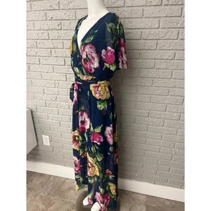 Luxology Women Navy Floral Faux Wrap Flutter Sleeve Maxi Dress Size 10