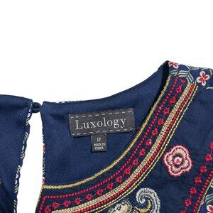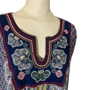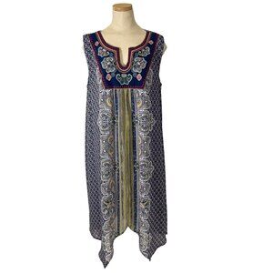 Luxology dress women's 12 blue red patterned a line embroidered boho sleeveless