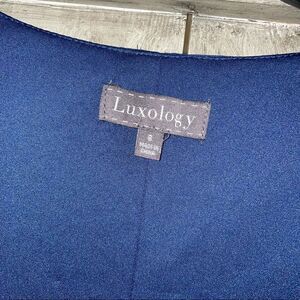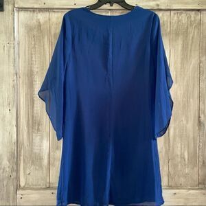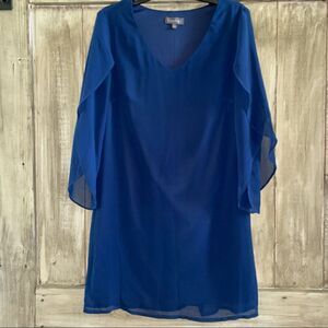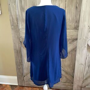 Luxology Navy Blue Sheer Flutter Sleeve Dress
