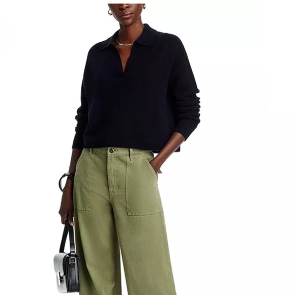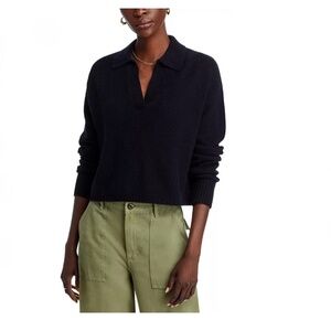 Luxurious 100% Cashmere Long Sleeve Polo Sweater By Aqua in Black