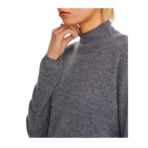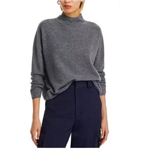 Luxurious 100% Cashmere Mock Neck Brushed Cashmere Sweater By Aqua in Med Gray