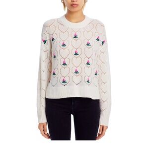 Luxurious 100% Cashmere Pointelle Embroidered Crewneck Sweater By Aqua in Ivory