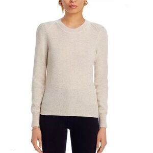 Luxurious 100% Cashmere Puff Sleeve Crewneck Sweater By Aqua in Oatmeal