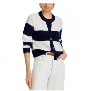 Luxurious 100% Cashmere Rugby Stripe Shaker Stitch Cardigan By Aqua in Navy / Iv