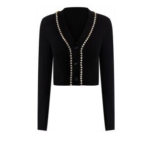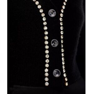 Luxurious 100% Cashmere V Neck Cardigan with Rhinestone Detail By Aqua in Black