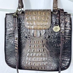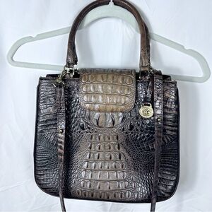 Luxurious Brahmin Brown Crocodile-Embossed Shoulder Bag long strap two handles