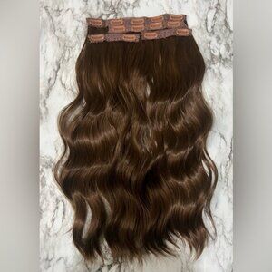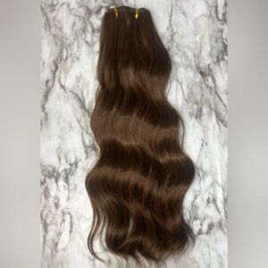 Enhance your look with this luxurious brown wavy hair extension. Perfect for adding volume and style.
