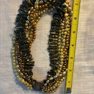 Luxurious Brown and Green Multi-Strand Fresh Water Pearls Necklace