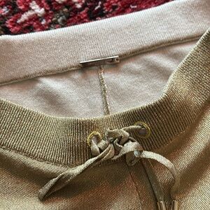 Stylish cashmere and gold knit jogger pants. Features a drawstring waist. Great gently used condition.