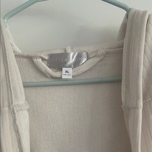 Indulge in the ultimate comfort with this luxurious cream hooded robe. Perfect for relaxing at home, this robe combines style and coziness. Brand new no tags has a few dirty marks from being put away can be washed an be cleaned.