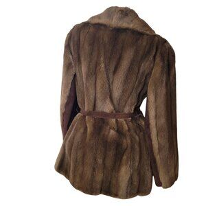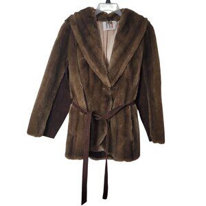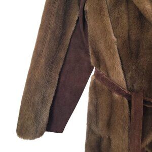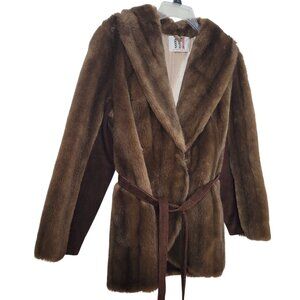 Luxurious Faux Fur & Leather Belted Coat Jacket Made In England