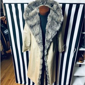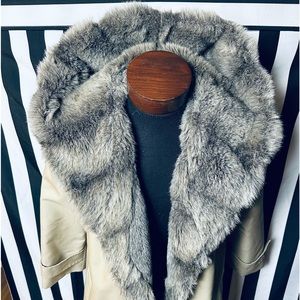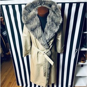Elevate your style with this luxurious tan trench coat featuring a plush faux fur trim. Perfect for adding a touch of elegance to any outfit.