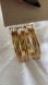 This striking gold tone cuff bracelet features a bold, modern design with multiple curved bands arranged in a parallel formation. The rich, warm gold tone and polished finish give it a luxurious and eye-catching appearance. Open-ended bands allow for easy wearing and adjustability, making it a versatile addition to any jewelry collection. Nickel free