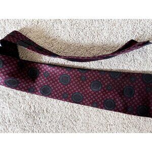 EUC. Luxurious Lanvin Designer Tie Made In Italy 100% Silk. Length 60in, width 3.5in. It is a marron with a navy blue design.