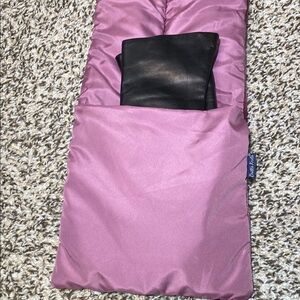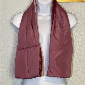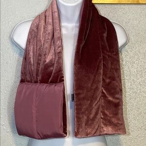 This elegant pink wrap combines a quilted texture with plush velvet, offering both warmth and a touch of luxury. Its generous size allows for versatile styling, making it a perfect accessory for cozy winter days. Large open pocket on one end. Approximately 43”x 7”.