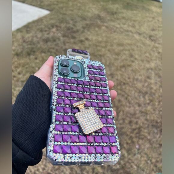 Luxurious Perfume Bottle iPhone 16 Case with Burgundy Crystals