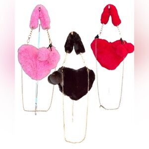 This NWOT Luxurious Pink Faux Fur 🩷 Heart-Shaped Plush Crossbody/Shoulder w/Adjustable Strap and Faux Fur Keychain is in Exceptional Used Condition (EUC): Previously lovingly cared for; but this is a preloved (used) item, some normal and minimal wear is expected. Depending on device used, color may vary. Review pics as they’re part of the description. Sold as is, no refunds. All auction bids/wins are final, no cancellations.