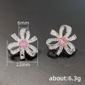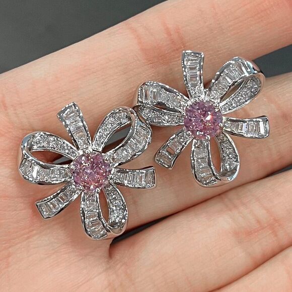 🌸Luxurious Pink Sapphire and Diamond Baguette Cherry Blossom Stud Earrin…
