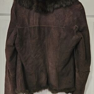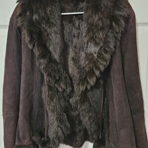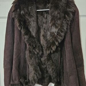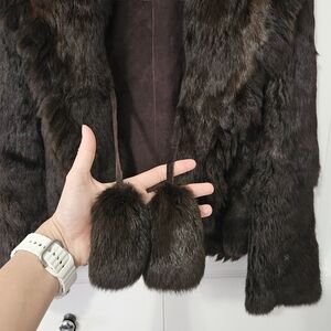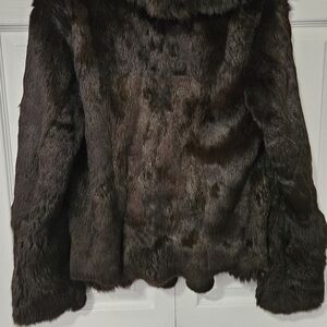 Elevate your style with this luxurious brown rabbit fur coat. Perfect for adding a touch of elegance to any outfit.