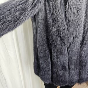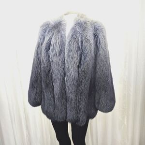 Luxurious Real Fur Coat Ombre Gray Blue Open Front Small Dyed Fox
