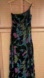 Chic black velvet top. Features blue floral patterns. Stylish and versatile.