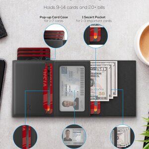 Features: Crafted from top grain leather, this slim wallet offers a sophisticated look with multiple compartments, including space for up to 13 cards, an ID window, and room for cash. Its magnetic closure adds a touch of modern elegance, while RFID blocking technology keeps your info safe. The pop-up card feature makes access quick and effortless.