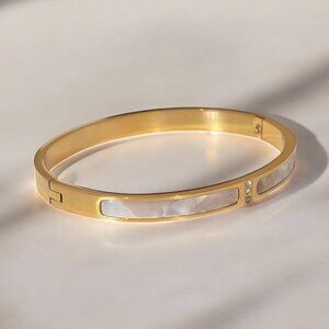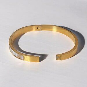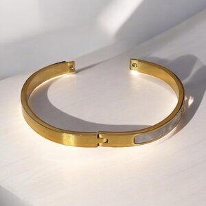 Experience luxury and style with our Luxurious Titanium Steel Bangle Bracelet. Made with high-quality gold and titanium steel, this bangle exudes elegance and sophistication. Perfect for any occasion, it will elevate any outfit and make you feel confident and chic. Upgrade your jewelry collection with this must-have accessory.