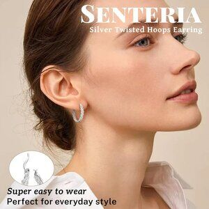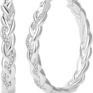 Features: Elegant twisted design symbolizing infinite love and power, made with high-quality sterling silver and sparkling AAA+ cubic zirconia. Large hoops that add a touch of glamour and sophistication to any outfit, perfect for both casual and formal occasions. Secure latch back for easy wear.