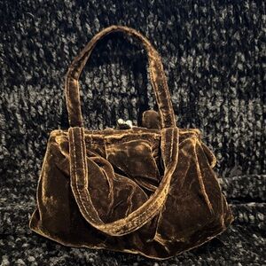 Elevate your style with this luxurious velvet clutch. Its rich brown hue and elegant design make it a perfect accessory for any occasion.