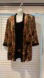 This luxurious velvet blazer is a statement piece, perfect for adding a touch of elegance to your wardrobe. The beautiful floral design blends shades of rich browns, golds, blacks, and soft dusty pinks, making it an eye-catching addition to any outfit. The black trim and the removable faux belt with a delicate beaded chain and faux tortoise shell add a chic touch of sophistication.