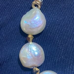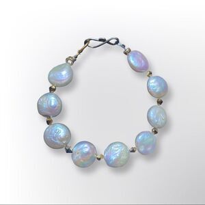 Beautiful, luxurious coin Pearl with Swarovski Crystal spacers bracelet with with sterling silver hook clasp