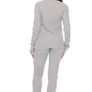 Features: This cozy 2-piece thermal set is made with a soft poly-cotton blend that feels gentle against the skin and keeps you warm without bulk. The fitted top and tapered long johns are perfect for layering under pajamas or everyday clothes during chilly days. Elastic waistband adds extra comfort, and the feminine cut makes it a pretty yet practical choice for winter.