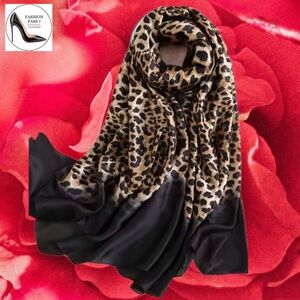 Luxury 100% SILK SATIN Large Shawl Leopard Print Scarf Animal Print Wrap leopard print maxi beach cover up