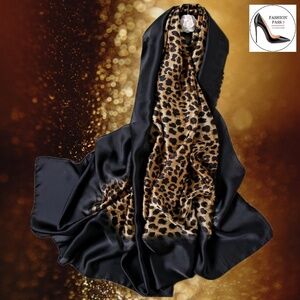 Luxury 100% SILK SATIN Large Shawl Leopard Print Scarf Animal Print Wrap Coverup