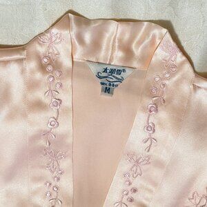 Luxury 100% Silk Embroidered 2-Piece Robe Cami Sleepwear Set - Peach Pink