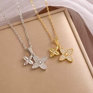 Luxury 18KT Gold Crystal Clover Charm Necklace