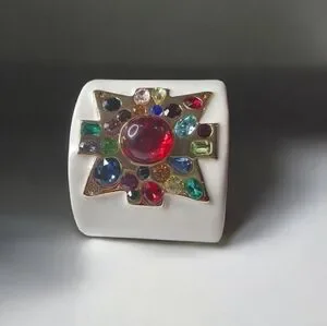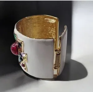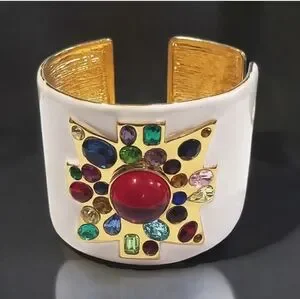 Luxury 18k Gold Plated Maltese Cross Jeweled Enamel Cuff Bracelet