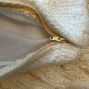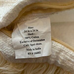 Add a touch of boho-chic to your space with this 24x24” luxury pillow cover! Featuring a textured off-white fabric and a stunning geometric diamond pattern, complete with fringe detailing. Perfect for any bohemian or farmhouse-style decor. In like-new condition and crafted with great care for lasting beauty.