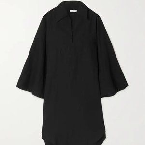 The Fil De Vie's 'Ava' kaftan can be styled for wear. This relaxed Kaftan is made from pure linen.As shown in a loose, flowing shape that clearly shows as a longer back hem. Go ahead vision that elegant collar with pearl earrings.