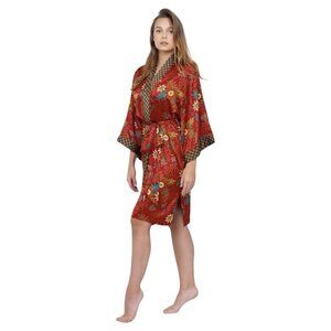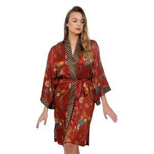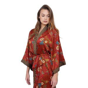 Luxury Batik Silk Blend Floral Kimono Robe Women’s One Size NWT
