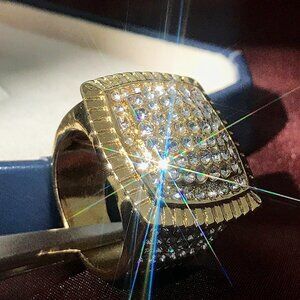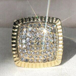 💥Luxury Big Crystal Rhinestone CZ Wedding Iced Out Gold Plated Ring,UNVN…