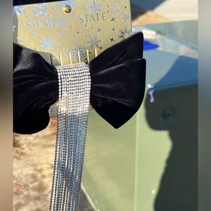 • Design: Elegant oversized bow with cascading rhinestone fringe for a glamorous look
