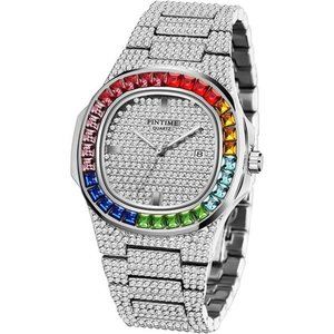 Luxury Bling-ed Out Colorful Diamond Watches Quartz Analog Stainless Steel Band