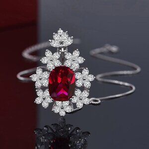 "Luxury CZ Red Stone Flower Shape Necklace for Women, HA4548